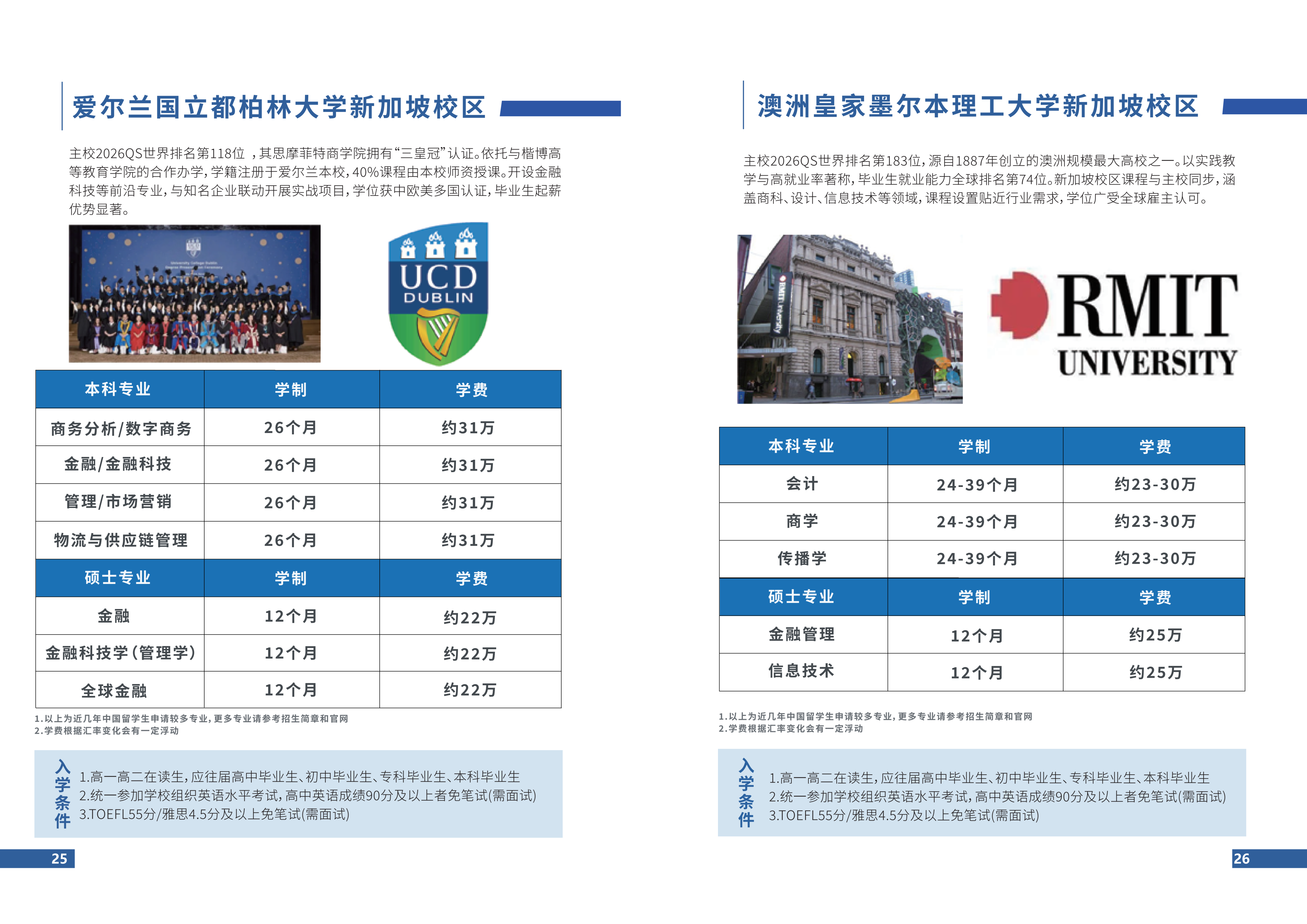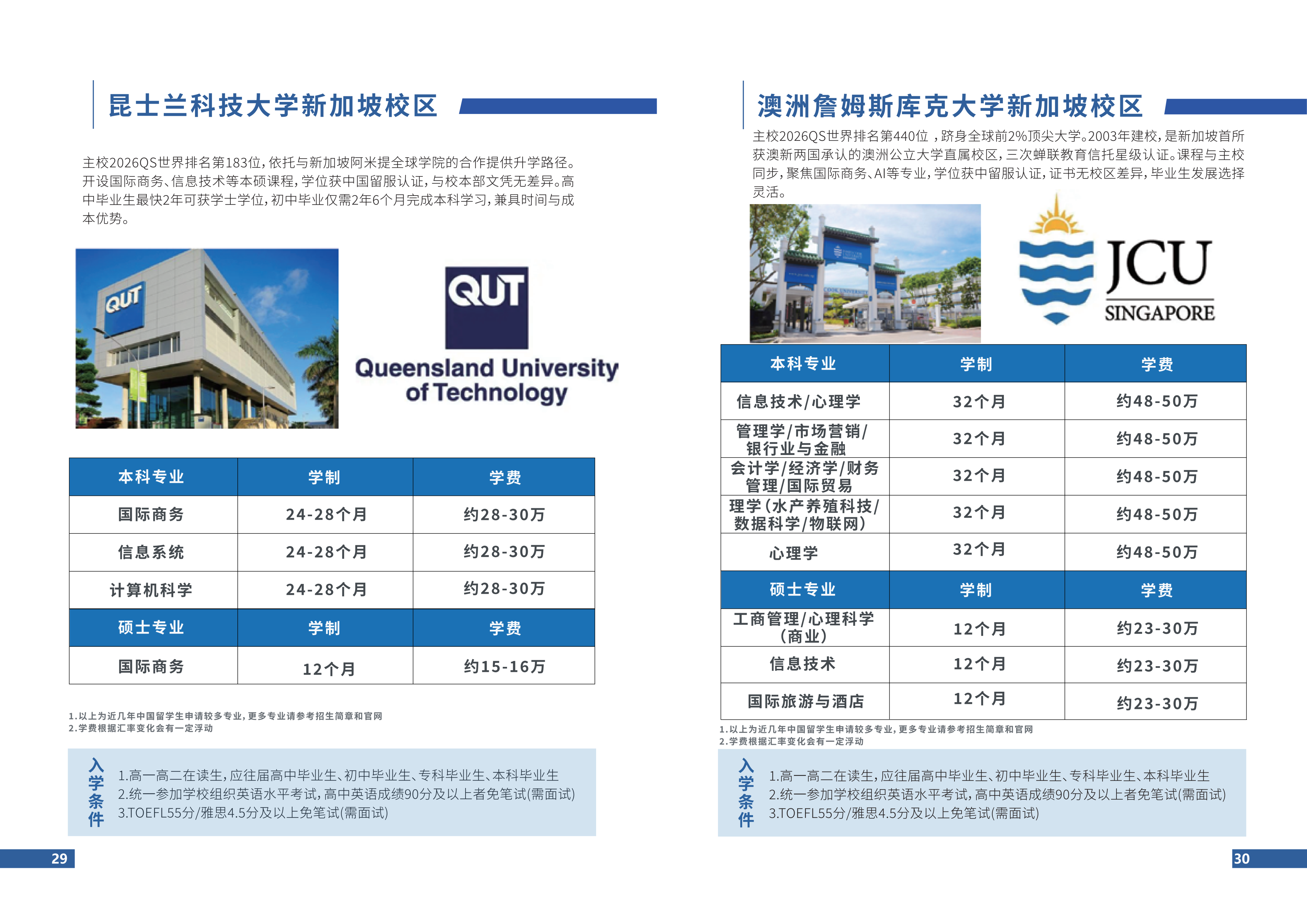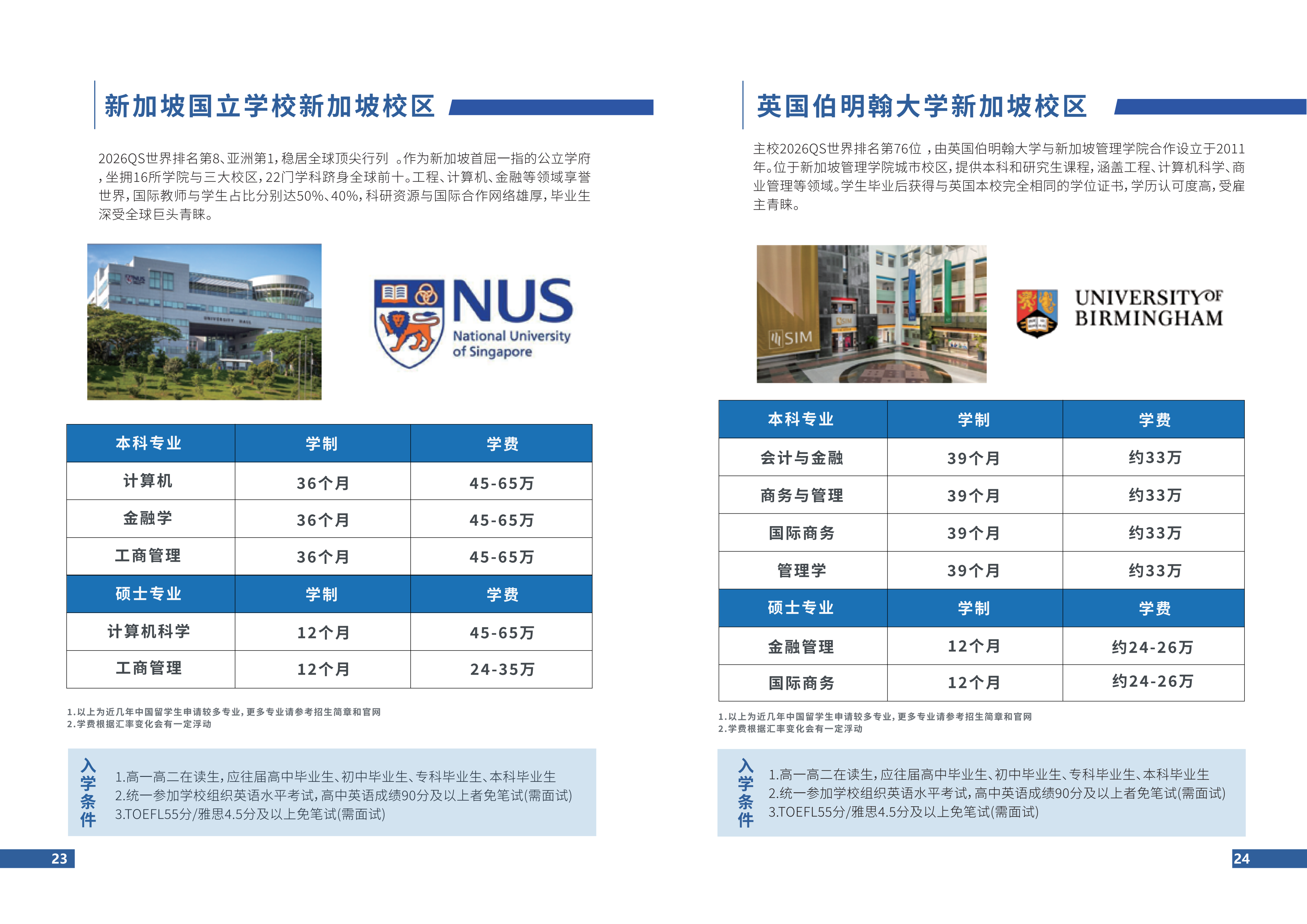 新加坡院校及部分专业